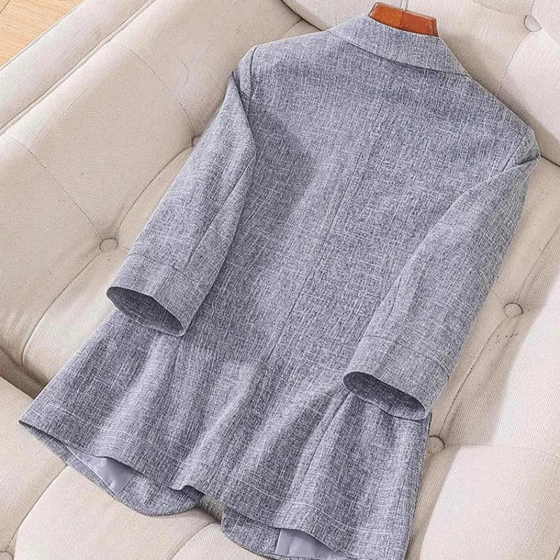Crafted in our signature Gossamer Linen, this blazer captures the art of understated luxury. Its lightweight weave and clean lines flatter the form without restriction, offering a poised silhouette designed for the modern pace of life.