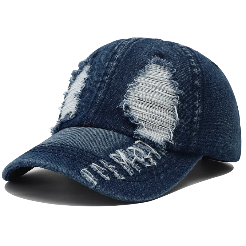 Worn-in yet timeless, this denim cap is crafted to perfection with intentional distressing, offering a weathered charm that speaks to the rebel within. A versatile piece for casual outings or daring ensembles.